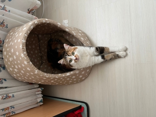 Bebekliğinden beri bizimle ama kötüleșen alerji durumumuzdan dolayı sahiplendirmek durumundayım. Guzel kizim 1 buçuk yaşında yaklaşık. Ismini biliyor oyun oynamayi cooook fazla seviyor yani cok hareketli bir kedi bunlari goze alarak yazin lutfen. Calico cinsi, pofuduk kuyruklu ve size alistigi zaman sirnasmayi kucakta uyumayi cok sever. Kucaginiz da ekmek de yapar. Kum kabını ve tasima cantasini da verecegim.