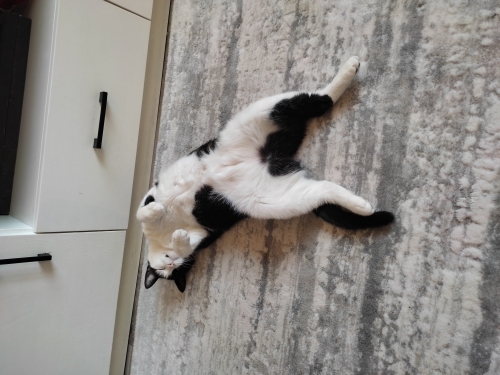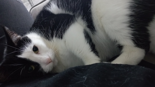 Siyah,beyaz dişi kedi. Kısırlaştırılmış ve aşıları tamdır. Tam bir ilgi delisi ve kucaktan inmeyen sevgi mıknatısıdır. Evde peşinizden gezmeyi,yemek yaparken bir köşede sizi beklemeye bayılır.
