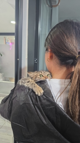 Dilara'yı sitemizin girişnde henüz gözleri kapalıyken bulduk. Bulduğumuzda 2 haftalık bile yoktu. Biberonla büyüttük. Ama anne sütü içmediği için 3 aylıkken calisi virüs geçirdi ve dilinin ufak bir parçasını kaybetti. Yemesine içmesine asla engel değil bu durum. Gayet sağlıklı. Fakat küçük bir sorunu var. Dilara cüce bir kedi :) Büyümüyor. Şu an 8 aylık civarı ama 3-4 aylık kedi boyutunda. Karma aşılarına başladım. Ona güzel bir yuva arıyorum. Umarım bu cüce güzel bir aileye evlat olur. Ayrıca uzun tüylü ve temas bağımlısı :)