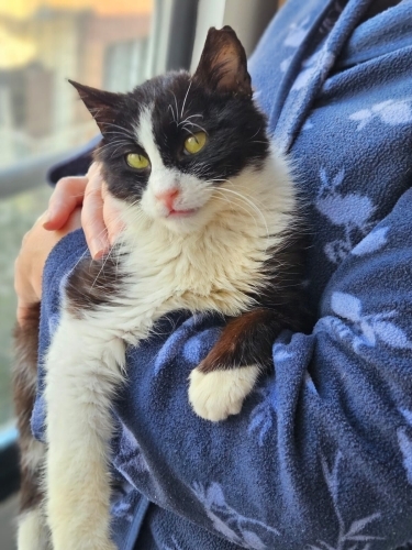 6 aylık kısır ve uyumlu bir çocuk.Kuduz aşısı ve iç dış parazit uygulamaları tam. Çipi var. Sokakta yaşıyordu. Defalarca tedavi edilmiş sokağa dönünce tekrar hastalanmış. Geçici yuvaya alındı ama zamanı kısıtlı. Sokakta yapamıyor malesef çok naif. Sıcak bir yuva şart.