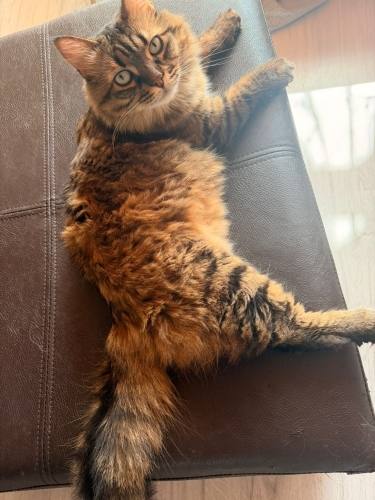 Bir bacağı ampute edildi ama koşturmaktan asla vazgeçmedi normal kediden farkı yok. Yumuş yumuş güzel huylu çok oyuncu kedi. Evdeki diğer kediler çok sakinler ve hastalar ve bu arkadaş sürekli oyun için onları biraz rahatsız ediyor. Evde başka bir oyuncu sağlıklı kediyle çok iyi anlayacaktır oyunlar oynayacaktır. İnsanlarla arası gayet iyi sevdiren kedidir. Evde tırnaklarını bile kesme gereği duyulmuyor.Tüm aşıları çipi vs var. Kısırdır.