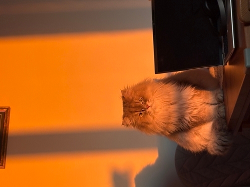 Gri renk kedimiz, 2 aylıktan beri bizimle. Şecereli bir kedidir. Annesi güzellik şampiyonu, kendisi de çok güzel. Sevgiyle büyüttük, sevilmeyi ilgiyi çok sever. Pasif bir kedi değildir, tabi yaş ilerledikçe daha sakin oldu ama. saklanbaç öğretmiştik oyun oynamayı çok seviyor. Ufak bebeğimiz olduğu için sahiplendiriyoruz.