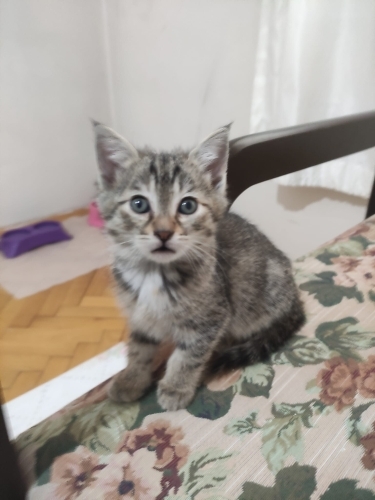 Ankara Cebeci'de 2 aylık dişi tekir kedi. Sokakta hayatta kalamayacakları durumda oldukları için annesi ve kardeşleri için geçici olarak oda tutuldu. Şimdi ona kalıcı yuva sağlayabilecek birini bekliyor.