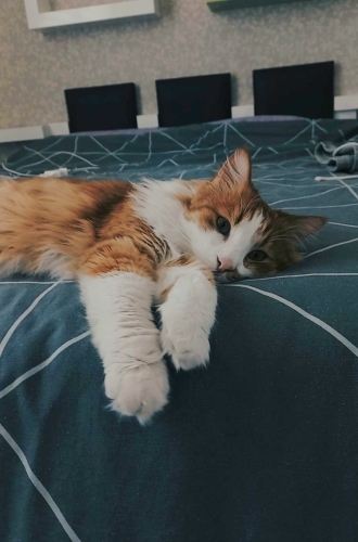 Kedim Lotus 5 yaşında, sarman, erkek ve kısırdır. 3.5 yıldır benimle birlikte yaşıyor. Çok sıcakkanlı, oyuncu, insan canlısı bir kedi. İsmini bilir, tuvalet eğitimi vardır. Tüm aşıları tam ve çiplidir.