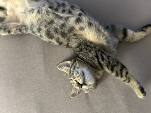 Kendisi oldukça enerjik, oyuncu ve ilgi isteyen bir kedi. Günlük oyun ihtiyacı yüksek olduğu için bu konuda zaman ayırabilecek bir yuva arıyorum. Belirli bir rutine alışkın, düzenli beslenme ve oyun saatleriyle çok daha mutlu oluyor. • Tüm aşıları tamdır • Çiplidir (ücretsiz devir yapılacaktır) • Tuvalet eğitimi vardır ve henüz kısırlaştırılmamıştır.