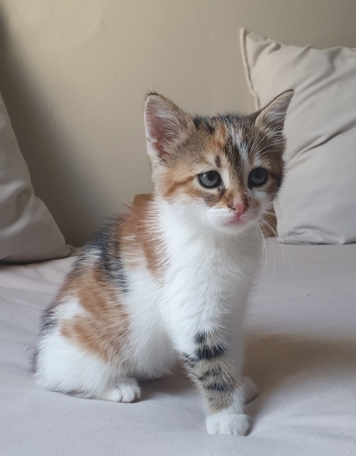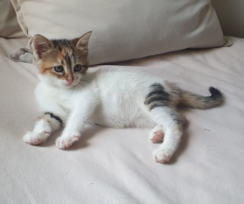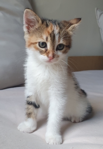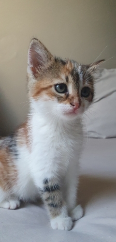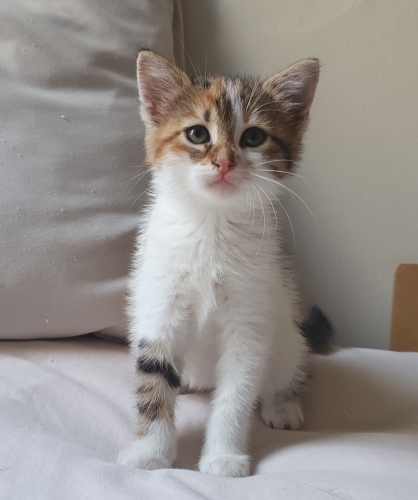 Kadir gecesi apartman önündeki bir arabanın motorundan çıktı bu güzel bebek. Çok korkmuş çok yorulmuştu. Hastaydı iyileşti, yedi içti bol bol uyudu. İç dış parazit ilacını oldu. Şimdi çok hareketli çok oyuncu bir şekerpare oldu. Kum alışkanlığı var, kuru mama yiyor. 2,5 aylık tatlı kız çok sevileceği ömürlük yuvasını arıyor.