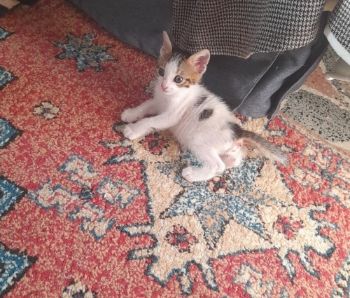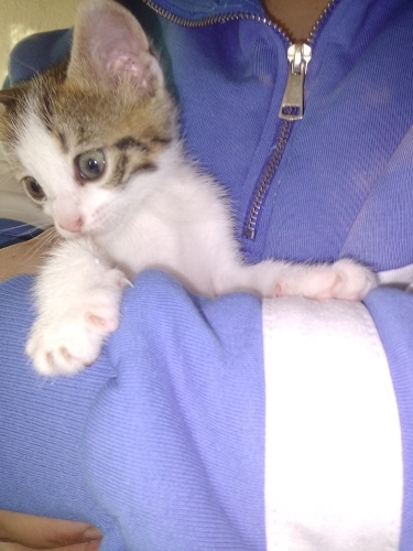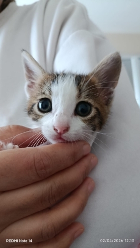 Mahallemizdeki Fırat parkında ablam bulmuş.Daha 1 aylık bile değil.Annesi yokmuş.Orada ki bir amca 3gündur belediye veterinerligini aramış gelen giden olmamış.Şuan durumu iyi yavru kedi maması yemeye alışmış.Tuvalet eğitimi de var.Daha küçük olduğu için aşıları yapılmadı.