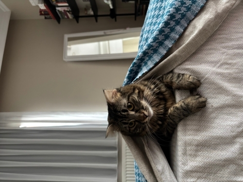 Hamur hanım 6 aydır bizimle. 3 yaşındaki kedim alışır diye bekledim çok uğraştım ama alışamadı. İşten eve döndüğümde tüy yumakları ile karşılaşıyorum, ciddi kavgalar ediyorlar ayrı odalarda tutmak zorunda kalıyorum. 2 yavruma da bunu yaşatmak istemiyorum artık. Gerçekten ailesi olacak, sonrasında sokağa bırakmayacak, aşılarını düzenli yaptıracak onu sevecek yuvasını arıyorum. Ayrılmayı hiç istemiyorum ama mecburum. Kısır değil ama kısırlaştıracağım, yada yeni ailesine ücret desteği vereceğim.