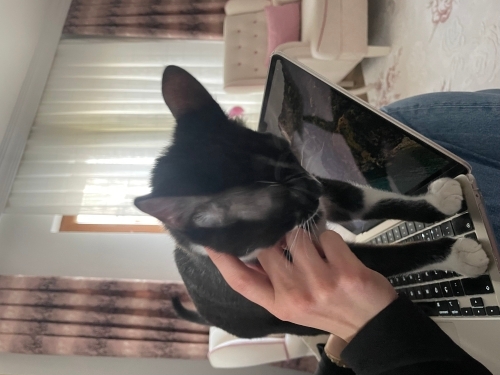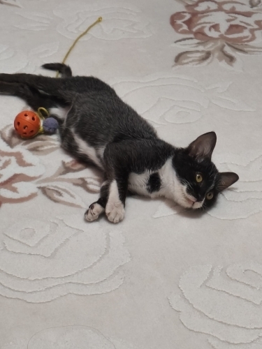 Karan, 8 aylık, yeni kısırlaştırdık, sokakta bulduğumda 2 aylıktı, geçici yuvadaki süresi bitti maalesef, o arada iyileşti, büyüdü, kilo aldı ve kısırlaştı, şimdi onu çok sevecek ömürlük yuvasını arıyor, çok oyuncu, insan ve temas bağımlısı, eve gelen misafirlere bile kendini sevdirir, acayip zeki bir kedi, oyuncağını atarsanız size tekrar atmanız için ağzıyla getirir ve önünüze bırakır. Mırmır, sürekli siz nerdeyseniz orda olan, dünya tatlısı bir oğluş 🫶🏻