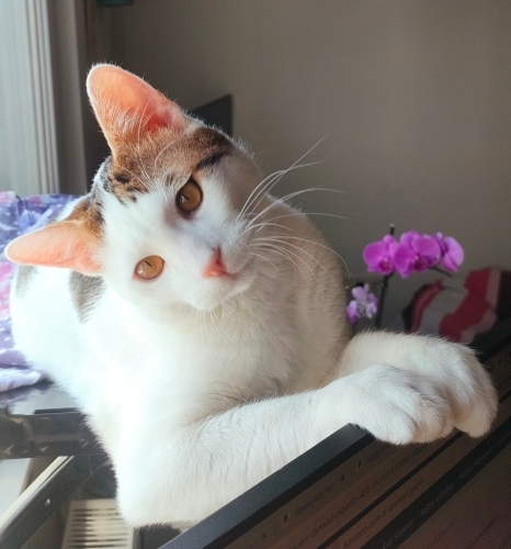 Eylül 2025'te önümdeki araçtan yola düştü, trafiğe atlayıp aldım. Hastaydı iyilestirdim, yuva bulamadım, bahçeye saldım, yine hasta oldu, yine iyilestirdim. Aralık başından beri evde. Kuyrugu anatomik sıkıntılıydı ampute edildi, kısırlastı, tüm aşıları yapıldı. Şu anda son derece sağlıklı, hareketli bir ev kedisi. İnsan aşığı ve köpek çok seviyor, 3 hafta geçici yuvasında bir border collie ile yaşadı. Birlikte aylarca mücadele verdik ve kazandık ama artık tutamıyorum bir an önce yuvasına kavusturmam gerekiyor. İstanbul-Burhaniye(Balıkesir) hattında yuva arıyoruz.