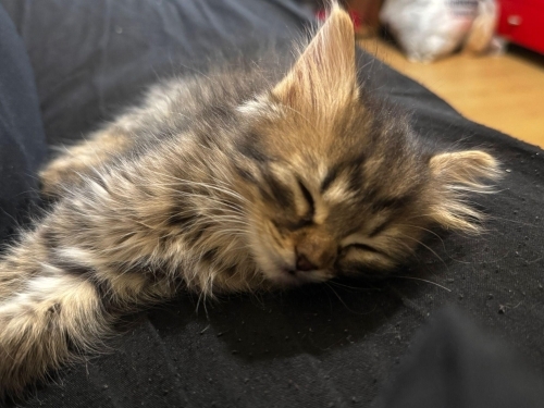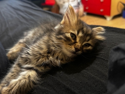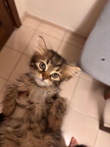 2 aylık, dişi tüylü tekir. Evde doğdu ve doğduğundan bu yana evde. İyi huylu, sakin bir kedi. Annesi artık emzirmeyi red ettiği için, yavruya hırçın davranıyor. O'na ömürlük yuva olacak ailesini arıyoruz. Lütfen kedi sorumluluğu alabilecek adaylar arasın.