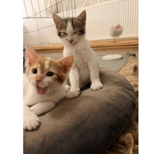 Annesi sokak kedisi, bahçemizde ara ara beslediğimiz bir kızdı. Doğurduğundan beri odamızda bakıyoruz anne ve yavrulara. Toplam 6 kardeşlerdi 4'ü sahiplenildi. 2 kardeş kaldı. İkisi de erkek. 1 tekir beyaz, 1 sarı beyaz yavru. İkisi de birbirinden güzel. Kum tuvalet alışkanlıkları var. İkisi de kuma yapıyor. Kuru mama da yiyorlar. Anneleri artık onlara bakmak ilgilenmek istemiyor. Anneden emmeyi kestiler. Aşıları yok. Sokağa da bırakmak istemiyorum. O yüzden iki kardeşi ve anneyi sahiplendirmek, sıcak yuvalarına kavuşturmak istiyorum. Lütfen onlara bir şans verin. Onlar daha bebek.