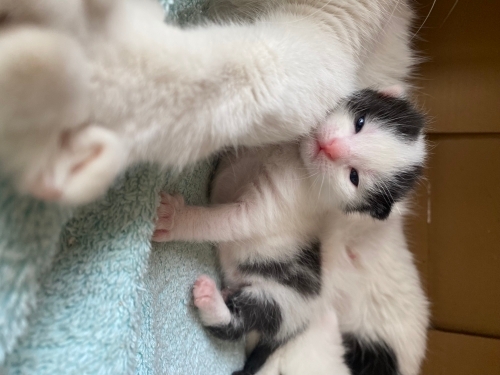 Pişi ve dori tahmini 3 haftalık. Hala süt emiyolar. Tahmini sahiplendirme için 1 buçuk ayı var.