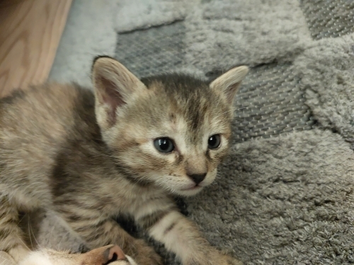 Siyah ve turuncu tüyleri var. 1 aylık olduğu için henüz kısırlaştırılmadı ve aşılanmadı. Kum eğitimi alıyor. Sütten kesildiği zaman sahiplendirilecek.