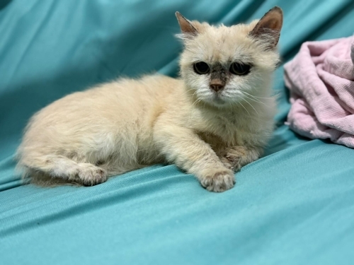 Annesi ile birlikte parka atılmış ve maalesef annesi ölmüş şekilde bulundu. Motorların arasına saklanarak kendini korumaya çalıştığı her yeri motor yağına sığınmış ve burnunun üstü bu yüzden siyah. ürkek ve uysal bir kedi. Onunla ilgilenebilecek güvenini tekrar kazanacak birine sahiplendirmek istiyoruz