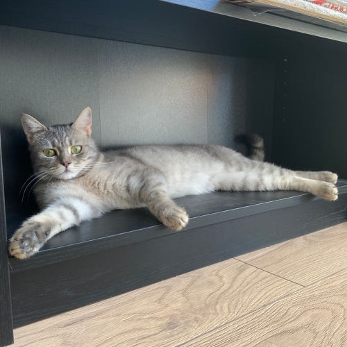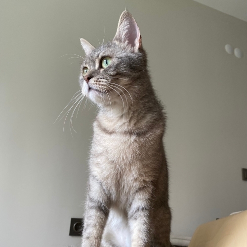 Yağmurun altında küflü ekmekleri yerken bulundu. Hemen yan tarafa koyduğum mamayı bulmayı bile becerememiş. İnanılmaz zayıf kalmış. Dokunduğunuz anda gurulduyor, kendini sevdirsin diye şirinlikler yapıyor. Yeri yoğuruyor, havayı yoğuruyor, sizi yoğuruyor. Güvende olmaktan o kadar mutlu ki. Bütün gün sessiz sakin cam önünde yatıyor. Tam bir prenses, oyun oynamayı çok seviyor ve konuşkan biri.