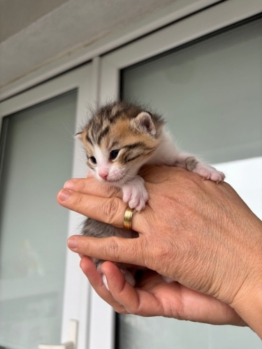Doğduğundan beri geçici evinde yaşıyor hiç sokakta kalmadı. Henüz bir aylık. Çok iyi sağlıklı bakıldı. Çok uslu. Sıcak bir yuva arıyoruz. Ev kedisi.