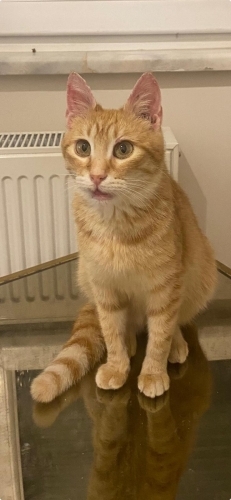 Bu sarı kızı yağmurlu bir günde apartman paspasına sığınmış bulduk. Zor nefes alıyordu. Veterinere götürdüğümüzde burnunda polip olduğunu ve boğazına kadar ilerlediğini öğrendik. Polip, operasyonla alındı. 1 aylık bir tedaviden sonra tamamen sağlığına kavuştu. Tekrar sokağa bırakmaya kıyamıyoruz çünkü temas bağımlısı, kucaktan hiç inmeyen, insanın boynuna dolanıp uyuyan aşırı uysal ve sevecen bir kız. Kısırlaştırma operasyonu için gün aldık. Kısırlaştıktan sonra yuvalandıracağız.