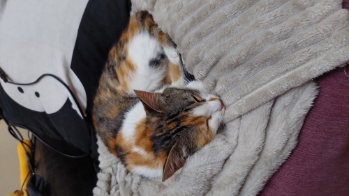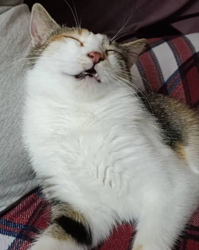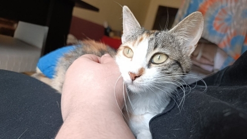 2 öğrenci Fındık'ı sokaktan alıp kısırlaştırdık ama uzun süreli bakacak maddi durumumuz yok maalesef. Geçici yuvasına çabuk alıştı, ömürlük evine de çabucak alışacağına eminim. Yediğimiz yemeklere sarkmıyor, biz iş güçle ilgilenirken kucağımızda veya yanımızda yatıp mırlıyor. Çok sevecen ve çok tatlı bir kedi. Yuva bulamazsak sokağa bırakmamız gerekebilir :(
