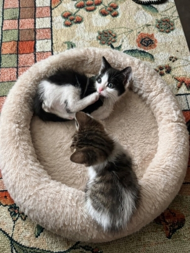 2 aylik çok guzel sağlikli yavru kardeşler. Siyah beyaz olan erkek, Tekir olan dişi. Tuvalet eğitimi var mamada çok seviyoruz çok seviyoruz çok seviyoruz. Evde doğup büyüdüğü bol bol anne sütü içdiler çok güzel uysal sevgi dolu yavru. Geçici yuva da çok güzel bakildi. Şimdi ömürlük yuvalar araniyor.