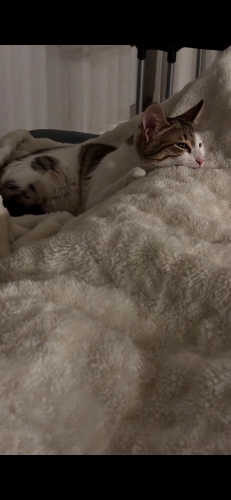 Lebi'yi pis bir depoda yaşadığı için eve aldık tüm aşılarını karma, parazit yaptırdık ama evdeki büyük kedimizle enerjileri uyuşmadığı için çok kavga edip anlaşamıyorlar ve üzülerek ikisinin de mutluluğu için sahiplendirmek zorundayız. 6 aylık bir dişi, oynamayı çok seviyor ve çok sırnaşık ilgi delisi üstünüzde yanınızda uyumaya bayılır. Gerçekten ona sıcacık bir yuva olabilecek, güvenilir bir yere verebiliriz. Whatsapptan yazabilirsiniz.