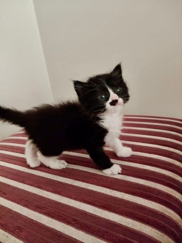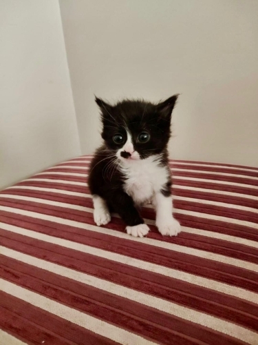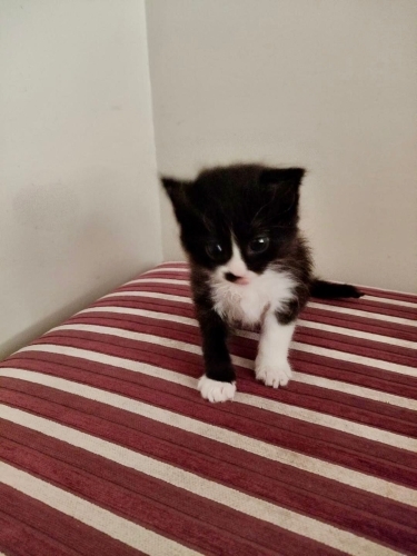 Pofi yaklaşık 1.5 aylık erkek yavru. Yaş mama ve kuru mama yiyor, kum eğitimi var.