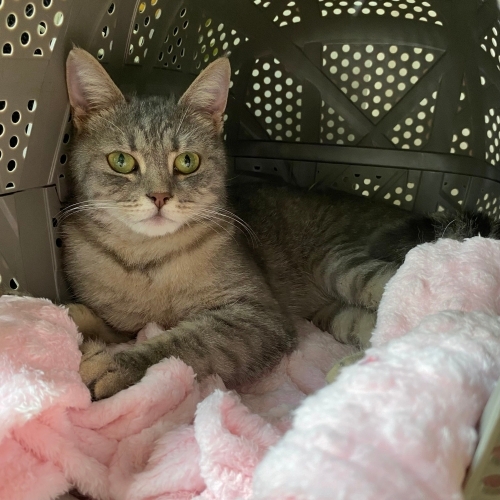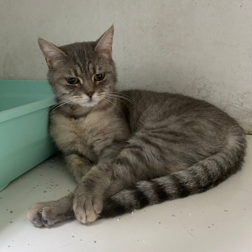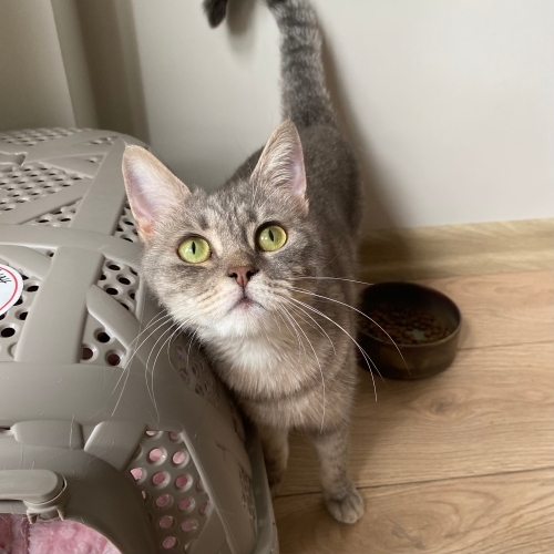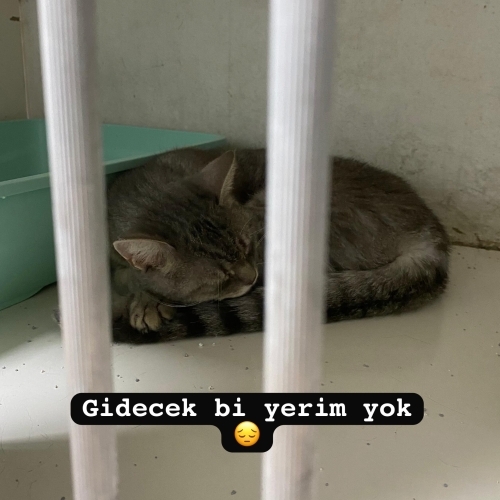 Diğer kedilerden çok korkuyor. Geçici yuvasında 8 engelli kedi var, onun kaldığı odaya ameliyat olan bir yavruyu aldık. Bu kız sokakta üşüttüğü için veterinerde. İki gün sonra çıkacak ve acil yuvaya ihtiyacı var.