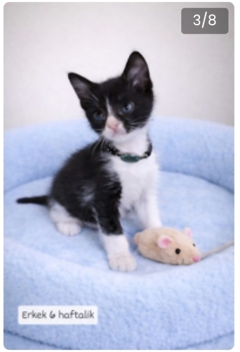 7 haftalık evde doğup 2 dişi, Tuxedo ve tekir yakışıklı erkek. Evde doğup büyüdüğü bol bol anne sütü içdiler çok sağlikli ve uysal sevgi dolu yavru lar.