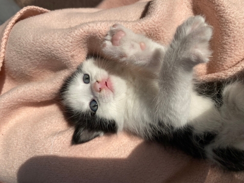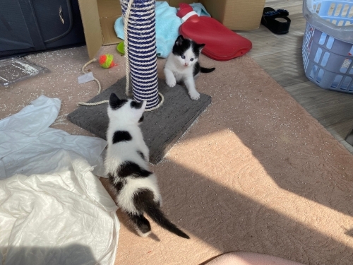 Pişi ve Dori tahmini 4 haftalık, hâlâ anne sütü emiyorlar. Sahiplendirme için yaklaşık 1 ayları var. İki kardeşin birlikte yuvalanması önceliğimizdir 🥰
