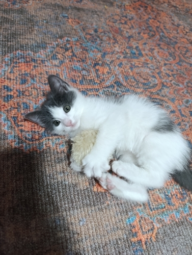 Bu bebeğin annesi sokağa terkedilmiş bir ev kedisiydi. Hamile olduğunu fark ettiğimizde eve aldık ve doğumu evde oldu. 4 yavrudan bir tek bu bebek kaldı diğerleri yuvalandı. 16 Şubat da doğdu tam olarak 8 haftalık oldu. Kum mama eğitimi var. 2 haftadır mama yiyor. Oyuncu canlı çok ama çok güzel bir çocuk. Ona güzel bakacak bebeklik enerjisini atacak oyunlar oynayacak bir aile arıyoruz. Taşıma çantası mama kapları ve iç dış paraziti yapılıp teslim edilecektir. Bilgi için mesaj atabilirsiniz.