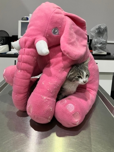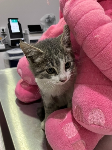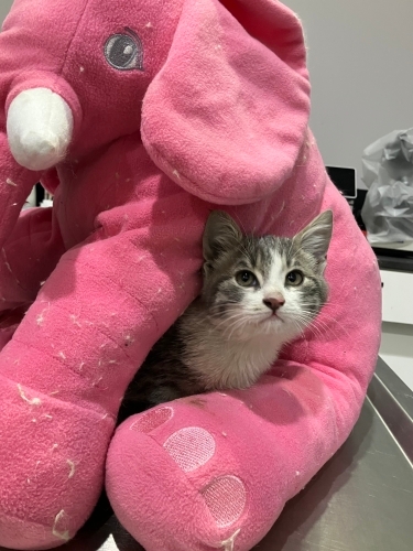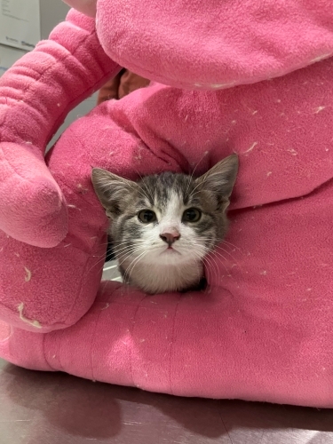 Yerleşim yerlerine uzak bir benzinlikte anayolun kenarında yaşamaya çalışan bu yavruyu annesini kısırlaştırmaya alırken bulduk. Annesini bırakmak istemedi. İki kardeşi daha varmış, onlar kaybolmuş. Anne kısırlaştıktan sonra benzinliğe geri dönecek. Yuva bulunmazsa bu yavru da. Burada düzenli mama yok ve ezilme tehlikesi çok yüksek. Araç kalabalığı ve gürültüsünden kaçıp çöp konteynırlarının içine sığınıyor. Annesi iyileşip taburcu olana kadar onun da şansını denemek istedik, sadece 3 gün süresi var.