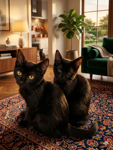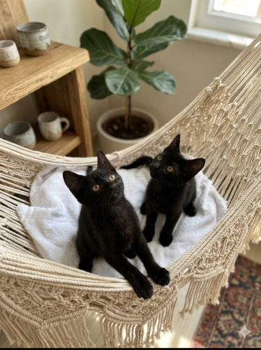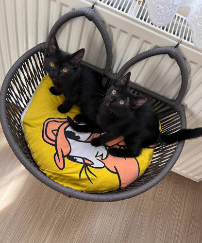 Zeyno ve Karam 2,5 aylık, dişi, Bombay cinsine benzer simsiyah kadife tüyleriyle göz kamaştıran iki minik yavru yuva bekliyor!