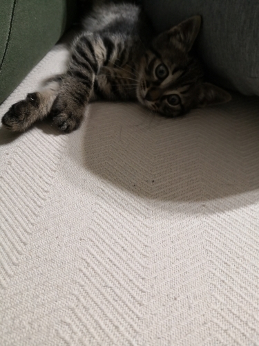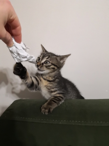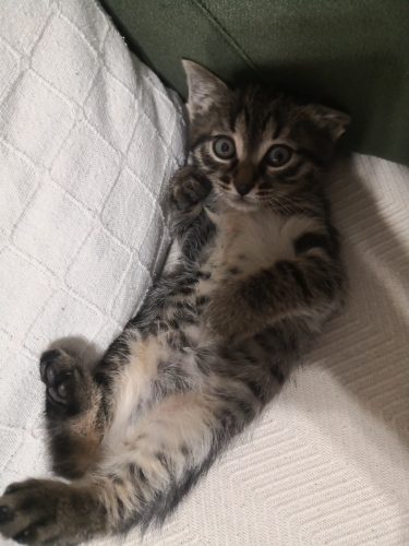 Annesinden ayrılalı 10 gün olan 1.5 aylık dişi bir yavru. Tuvalet eğitimi var. Kuru mamayı ıslatınca yiyebiliyor. Kucakta uyuyan peşimizde koşturan enerji dolu sevimli bir yavru. Uyanık olduğunda sürekli oyun oynamak keşfetmek istiyor.Ona sevgiyle ömür boyu bakabilecek gerçekten bir kediyle yaşamaya karar veren sorumluk sahibi bir yuvaya vermek istiyorum.