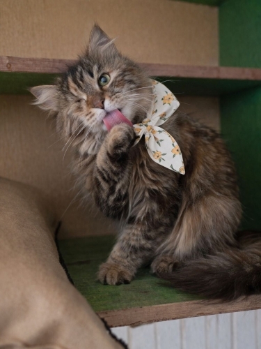 Gözü yaralı terkedilen nazlının ne yazı ki sağ gözü alınmak zorunda kalınmış.Günlük yaşamında hiç bir sıkıntısı yok.Gerçek bir norveç orman kedisi. Kendisine seslenildiği zaman hemen reaksiyon gösteriyor kucağa gelip kendini sevdiriyor. Diğer kedilere alışık ve evin ikinci kedi olmasında hiç bir sıkıntı yok. Kadife gibi renki uzun tüyleri ile evin neşesi olmaya hazır. Geçici yuvasında zamanı doldu o yüzden sorumluluk sahibi aile düzeni oturmuş bir aileye sahiplendirmek istiyoruz.
