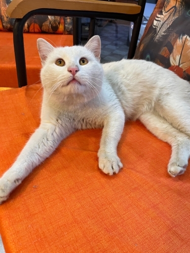 sokakta bulundu çipi çıktı. sahibi işten atıldım mama alacak gücüm yok attım sokağa dedi. gözden çıkarılmış günlerdir sokakta perişan olmuş. nolursunuz ona şans verin. henüz 1 yaşında. o kadar yorgun ve mutsuz ki. pamuk gibi tüyleri kirlenmiş, aç susuz kalmış. Çok sakin çok uyumlu. Erkek, 1 yaş, kısırlaştırma şartı var. Ankara