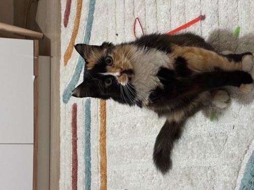 Merhabalar miniş bizim sokağımızda kalan dünyalar güzeli bir kızdı bir gün ağzına problem olduğunu görünce veterinere götürdük arka dişleri çürüdüğü için çekilmek zorunda kaldı 2 aydır bizim evde yaşıyor ama iki senior zorba kedimiz olduğu için bizim evimizde rahat yaşayıp haraket edemiyor bu nedenle sokakta yaşamasını istemiyoruz ve sahiplendirmek istiyoruz bu güzel bebeğin kalıcı yuvası olmak ister misiniz??