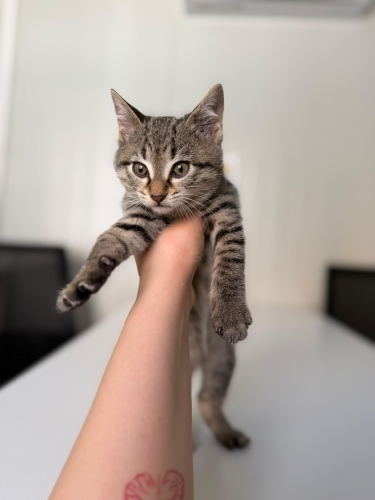 Annesiz çöp kenarında bulundu iki başka yavru ile birlikte. Süt anne ile birlikte ev içi korumaya alındı. Anne sütü ile büyüdü, şimdi yuvadan uçma vakti geldi. Ömürlük yuvasını arıyoruz.