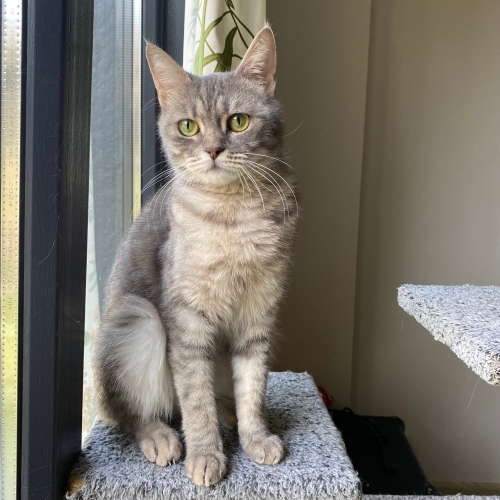 Bihter, Dişi, Kısır, 1.5 yaşında, parazit aşıları yapıldı. Sokakta üşüttüğü için tedavi gördü. British Shorthair melezi.