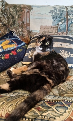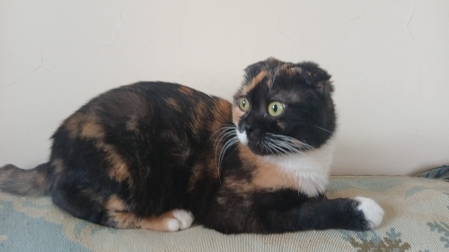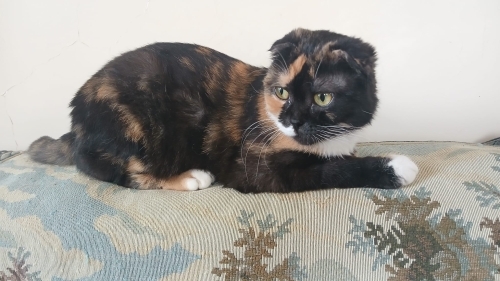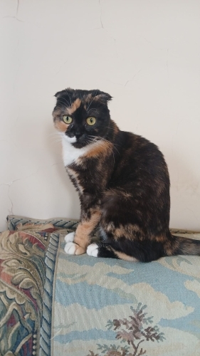 Salvador Dali resimlerini seviyorsanız, bu kedi Salvador Dali resimlerinden fırlamış gibi muzip ve komik bir görüntüye sahip, ve müthiş dost canlısı ( insanlara), acayip eğlenirsiniz. Geçici bakıyoruz, sahibinin taşındığı şehirde bakma imkanı yoktu. Ücretsiz verilecektir. Detayları şöyle: Çok insancıl, sahibine çok hızlı bağlanıyor, ama aynı evde başka kedi ilişkisi iyi değil. (Tanıştırma sürecini iyi bilmeyen) kedili bir ev iseniz size uymaz. Uyurken minimal horlar, nefes alırken belli belirsiz nefes sesi duyuluyor. Scottishlerin nefes yolu ırksal olara bi tık dar, bunun sonucu. Yanınızda uyumayı sever. Sahibi , iş değişikliğinden Antalya'ya halasının yanına taşınınırken halası kedi istemediğinden şu an ben geçici bakıyorum. Su içerken ve yalanırken şapırtılı gırtlak sesleri var. Hiç kediniz olmadıysa: 1. kedinizin tırnaklarını düzenli kestirmezseniz mobilya , halı vsyi tırmalama tahtası olarak kullanabilir. Tırmalama tahtası alın ama tırnağını da düzenli kestirin, yoksa güzel kanepenizdeki tırnak izleri evde kedi aşkınızı sona erdirir. 2. Kedinin tuvaleti bence banyoda olmalı ve en azından kakası günlük tuvalete kepçesiyle atılıp sifon çekilmeli, çiş topakları ise 3-4 günde bir mini poşetle ( mini buzdolabı poşeti çok uygun) çöpe atılabilir. Bu tuvalet temizleme işi yeni kediseverlere zor gelir. Çocuğunuz için alırsınız, tuvalet işi omzunuza kalır, bu bir kedi için kolay, hatta iki kedi için de. Ama benim bu geçici bakma süremde gördüğüm, diğer kediler çok uyumlu olursa bu kaliko belki uyar, bi ikinci kedi ile belki. Çok büyük ihtimal tek kedi olmalı. Kalikolar böyle. Her türlü kuru mama yiyor. Çok protein vitamin mineral yüklememek için 2 gün arayla rafadan yumurta, tavuk, ciğer. Ama ilk doğduğu ortamda ev yemekleri verilmiş, kurufasulye ( sosunu minimum azaltıp, baharatsız ) bile bayılarak yiyor, ne yiyorsanız tadına bakmak istiyor. Soğan sarmısak vb neyin zarar verdiğini çok iyi öğrenmeniz lazım. Sadece kurumamaya mahkum etmemeli, ama diğer besini ölçülü dikkatli vermeli. ÇOK ÖNEMLİ ARTISI : tüyleri çok kısa: minimum tarama bakımı ile evde tüy saçılma riski diğer kedilerin aksine sıfıra yakın olur.