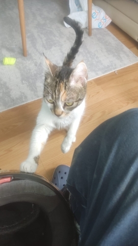 2 yaşında. Dişi. Kısırlaştırılmamış. Aile evine geçtiğim için bakacak Luna'ya yeni bir yuva arıyorum. İnsanları çok sever. Biraz oyuncudur ve evi sineklerden korur.