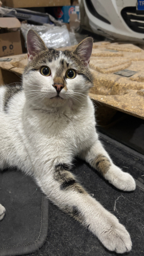 Oburiksi 2025 eylül ayında besleme yaptığımız bölgede bulduk. Çok küçüktü, çenesinin sol tarafı parçalanmış haldeydi direkt veterinere götürdük. Sokakta büyük kediler tarafından saldırıya uğramış ve çok ciddi yaralanmıştı, bir ay boyunca klinikte kaldı. İç diş parazit ve karma-1 aşısı yapıldı. İyileşince besleme bölgesine bırakmak zorunda kaldık çünkü yuva bulamadık aylarca oburikse. Ancak bölgedeki büyük kediler tarafından yine saldırıya uğradığı için tekrar klinikte yatmak zorunda kaldı. Tedavisinin ardından sokağa bırakamadık ama yuva da bulamadık geçici olarak sanayi bölgesinde bir dükkanda başka kediler gelip gittiği için oburikse zarar vermesin diye kafesin içinde yaşıyor aylardır. Malesef ki cins değil diye kimse bu çocuğu istemiyor. Ama oburiks gel gel yapınca kucağa çıkmaya bayılan, taranmayı çok seven, oyuncu bir kedi. Kafeste yaşadığı ve hareket alanı kısıtlı olduğu için birazcık kilolu 5kilo 400gram :) Oburikse gerçekten yuva olacak bizim kıyamadığımız gibi kıyamayacak ömürlük bir aile arıyoruz. İletişime geçildiği takdirde videolarını gönderebiliriz.
