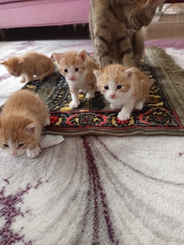 Ankara Keçiören de yaşıyorum sokakta besledigim kedi evimizin giriş katta olması sebebiyle camdan girip 8 Mart'ta doğum yaptı şimdilik bakıyorum ama oğlumun alerjisi var bende rahatsızım karaciğer hastasıyım. Yavrulardan biri sahiplendirildi. Geriye 2 erkek bir dişi kaldı acill yuva lazim Allah tan korkusu olan hayvanseverlerden dönüş bekliyoruz. Yaş ve kuru mama yiyorlar. Tuvalet eğitimi var