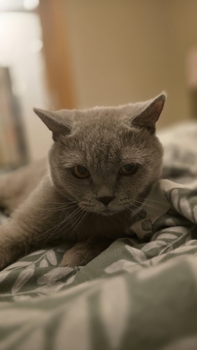 Kedimiz pati erkek ve brutish shorthair cinsinde olup 3 yasındadır. 2 aylık oldugunsan beri bizimle yaşamaktadır. Tüm aşıları düzenli olarak yapılmakta olup mizaç olarak sakin ve sevecen bir kedidir.Kısırlaştırılmıştır.