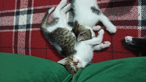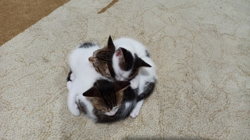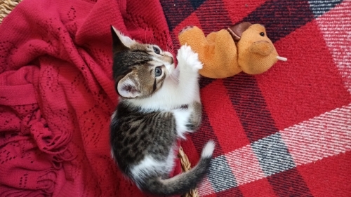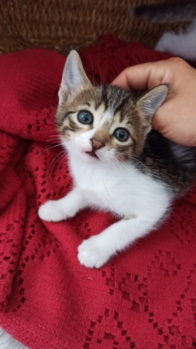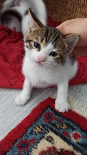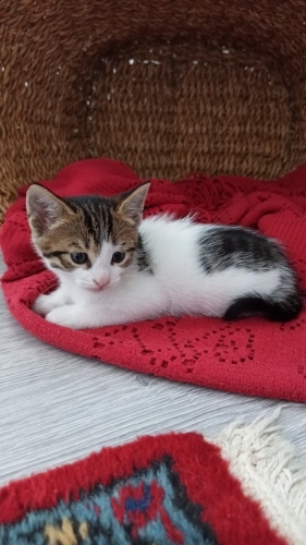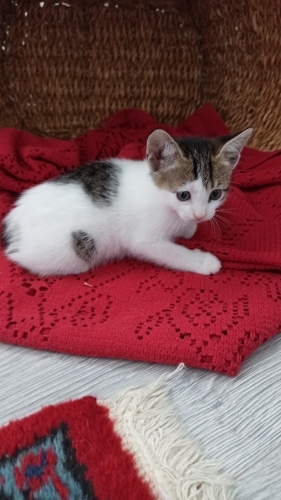 Misa kız (ks. Misafir) sokak kedisi, sokaktan geldi camımızın önüne ve yavrularını doğurmak için bizi seçti. Şimdi onları büyüttük ve kalıcı ailelerini arıyoruz. Beş yavrumuzun ikisi sahiplenildi, üç yavrumuz kaldı. Altı haftalık sağlıklı, oyuncu, bir o kadar da cana yakınlar. Kucakta uyuyacak kadar insancıllar. Tuvalet alışkanlıkları başladı. Ek kuru mama alıyorlar. Onları evlat gibi sevecek güzel insanlara teslim etmek istiyoruz.