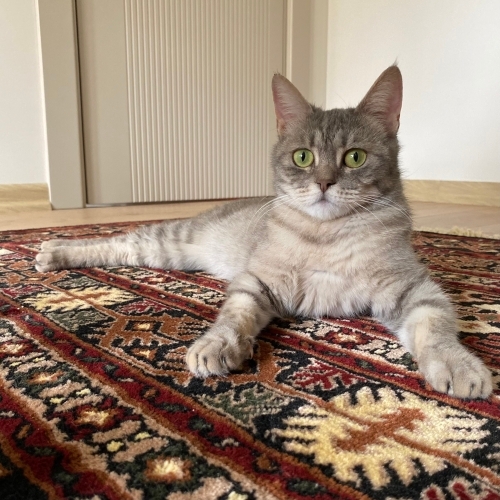 Dokunduğunuz anda gurulduyor, kendini sevdirsin diye şirinlikler yapıyor. Yeri yoğuruyor, havayı yoğuruyor, sizi yoğuruyor. Güvende olmaktan o kadar mutlu ki. Bütün gün sessiz sakin cam önünde yatıyor. Tam bir prenses, oyun oynamayı çok seviyor ve konuşkan biri.
