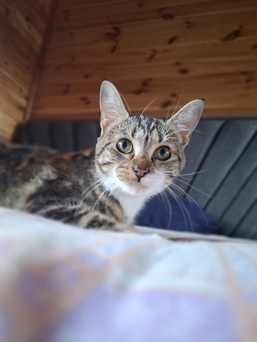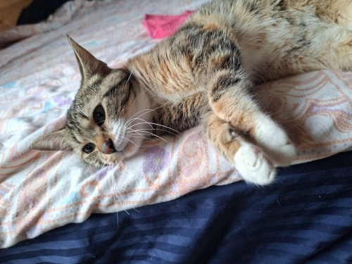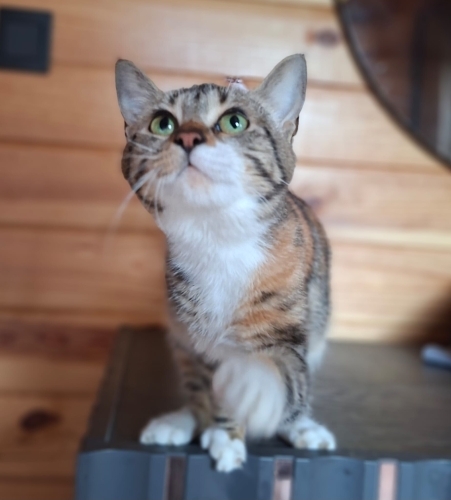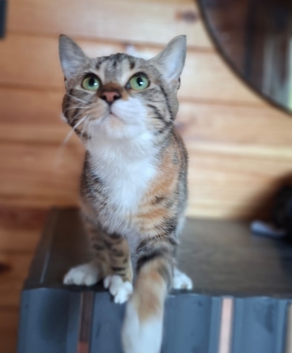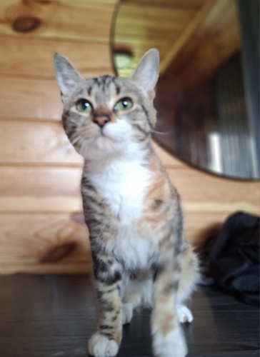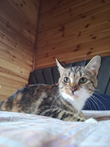 8 aylık dişi calico. Kısırlaştırılarak teslim edilecektir. İnsanla teması çok güçlü, kucakta vakit geçirmeyi sever. Daha önce sahiplendirilmiş ancak terk edilmiştir. Kalıcı ve sorumluluk sahibi bir yuva arıyoruz.