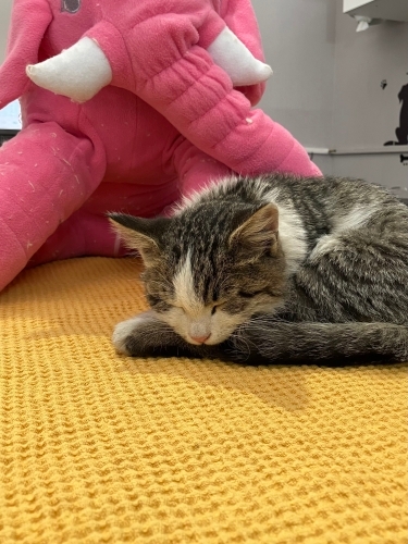 Yerleşim yerlerine uzak bir benzinlikte anayolun kenarında yaşamaya çalışan bu yavruyu benzinlik çalışanları ihbar etti. Burada düzenli mama yok ve ezilme tehlikesi çok yüksek. Birkaç kez de araç kaputuna girmiş, zorlukla çıkarmışlar. Araç kalabalığı ve gürültüsünden kaçıp çöp konteynırlarının içine sığınıyor. Bir hafta süresi var, yuva çıkmazsa benzinliğe geri bırakmak zorundayım.