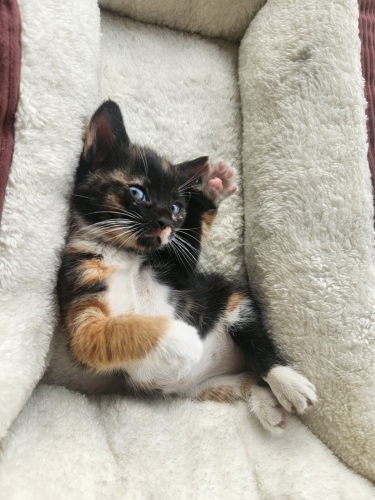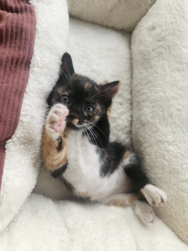 Merhaba, Bu güzel kızı bugün bahçemizde bulduk. Annesini bekledik fakat gelmedi. Veterinere götürdük parazit damlasını yaptırdık. Henüz 550gr :) Kulakları temizlendi, tırnakları kesildi. Yaklaşık 1aylık şirin bir kız. Küçük olduğu için şu an 2saatte 1 biberonu ile beslenmeli. Zamanla kuru mamaya geçecektir. Ben kum kabı, süt tozu, biberonu, yatağı ile size sahiplendireceğim. Burada ikamet etmiyorum ailemi ziyarete geldiğimde yollarımız kesişti o nedenle evime dönmeden önce ona sıcak bir yuva arıyorum. Resimlerden ve videolardan da göreceğiniz üzere kendisi çok zarif güzeller güzeli bir hanımefendi. Calico cinsi kedileri bilenler bilir, çok uslu ve evcimen olurlar. Birlikte büyüyeceği yuvasını arıyoruz