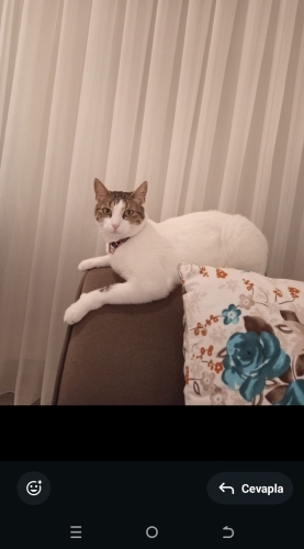 Kedim pamuk 3 yaşında. Hemüz 3 aylıkken sokaktan aldım sahiplendim. Çok uysal ve dost canlısıdır, kendini sevdirme yollarını bulur.Aşıları düzenli yapıldı 6 aylıkken kısırlaştırıldı. Sağlık sorunları sebebiyle üzülerek sahiplendirmek zorundayım. İzmir içi tercih önceliğimizdir.