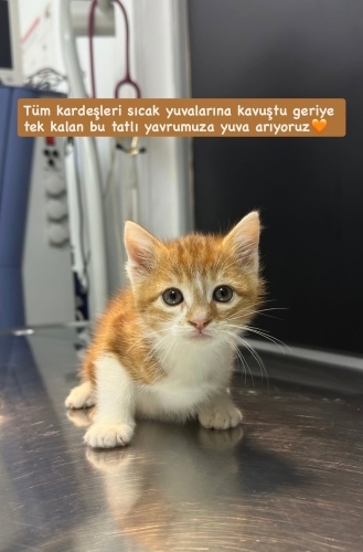Bir aylıktan itibaren veteriner hekim gözetimindeydi. Çok sağlıklı doğdu anne sütü içti iç dış paraziti yapıldı 5 viral hastalık testi yapıldı hepsi negatif çıktı hasta veya taşıyıcılığı bulunmamkta.(fip,fiv,lösemi vb.). Tuvalet eğitimi var ve kuru mama yiyor. Diğer kardeşleri yuvalandı bir süredir yalnız tek başına kafeste kalan yavrumuz sıcak yuvasına kavuşmayı bekliyor. Kısa süre içinde yuva bulunamazsa maalesef sokağa dönmek zorunda kalacak.